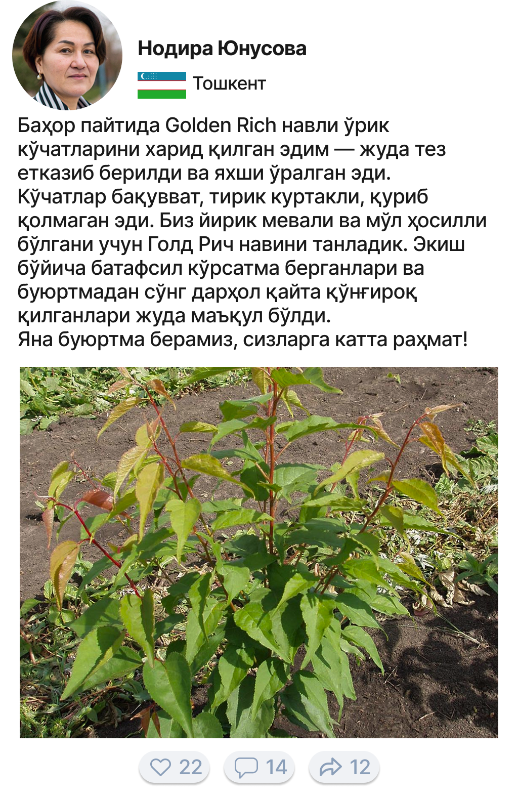 Олтин ҳосил "Голд Рич" кўчати билан бошланади!