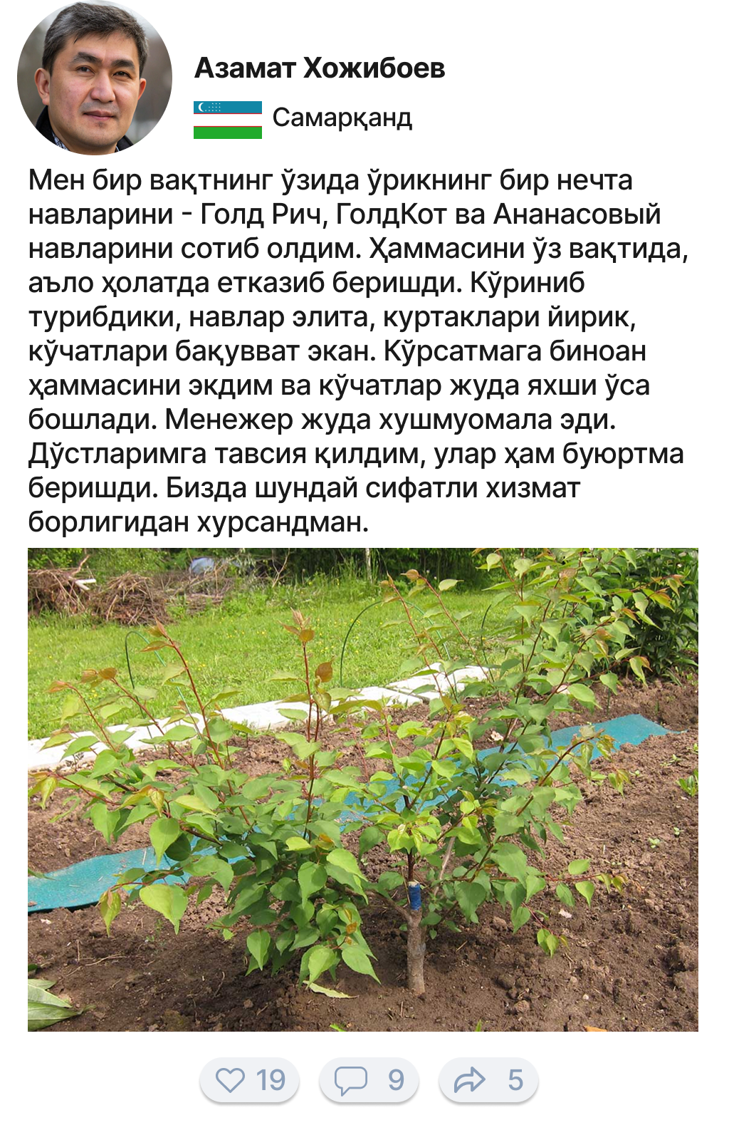 Соғлом ва бақувват кўчатлар етказиб берилади