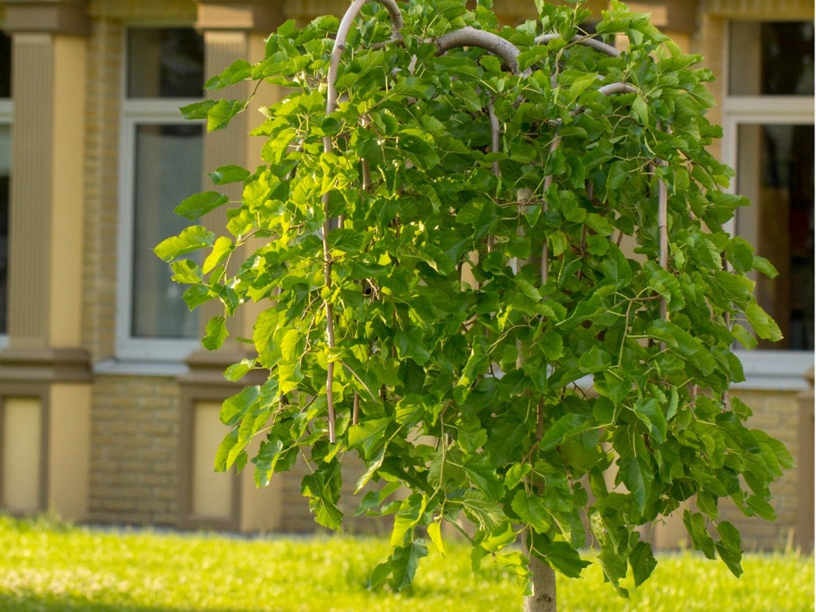 Чиройли, йиғлоқи тожли, оч рангли, 6-8 см гача чўзинчоқ мевалари бўлган штамбли тут. Мевалари нозик, ширин, қўл ва кийимлар бўялмайди.