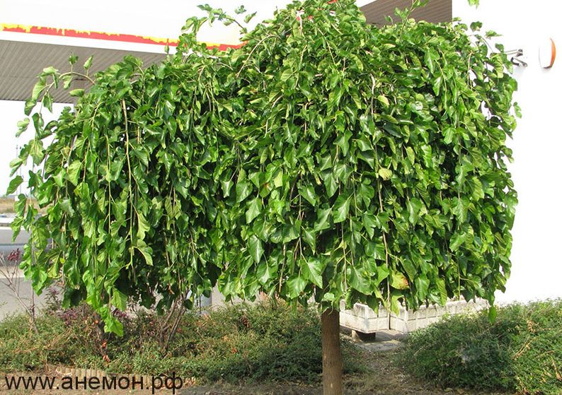 Ёйсимон шохлари билан классик "йиғлоқи" шакли 2-6 метрга етади. Меваси тўқ қизил ёки қора рангда, ширин ва йирик бўлиб, ҳам манзаралилик, ҳам ҳосилдорликни ўзида мужассам этган.